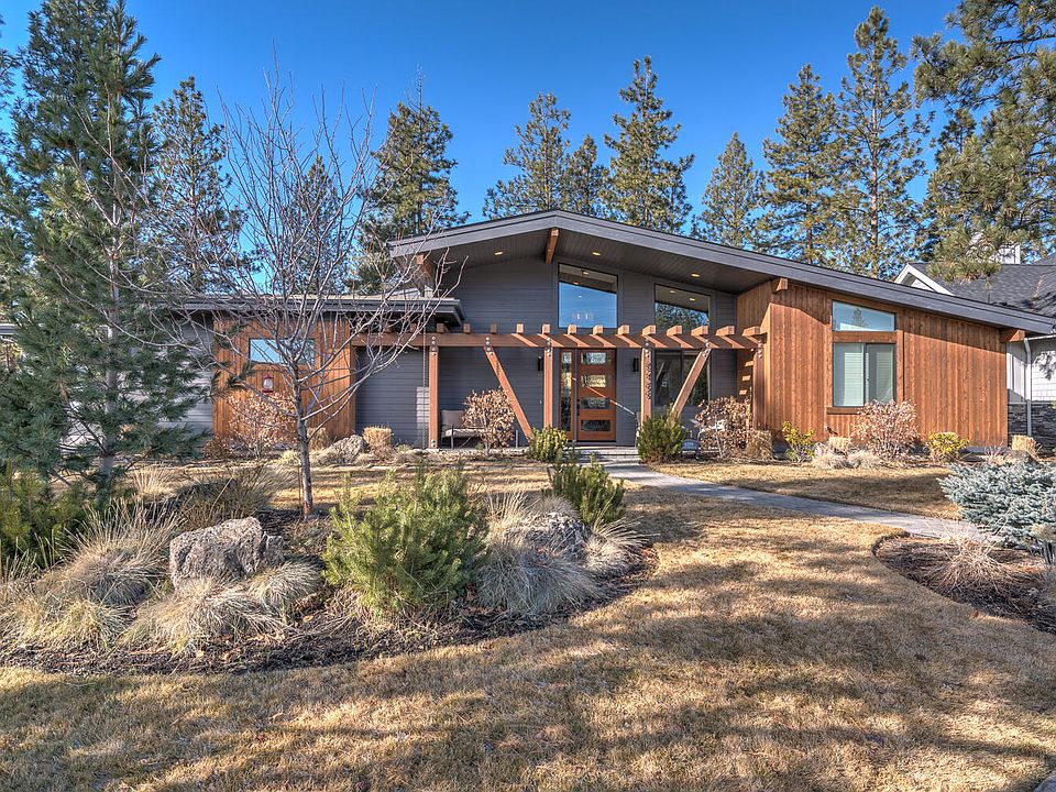 Welcome to a place you can truly call home in this single level Mountain Modern built by Rundle Construction, in beautiful Three Pines Ridge. Enjoy high vaulted ceilings and large windows in this open concept 3 bedroom 3 bath home with an office. The gourmet kitchen with high end appliances, solid quartz countertops and modern finishes is perfect for entertaining while you chef it up. The home features built-ins throughout adding to the abundance of storage options as well as custom blinds, providing complete privacy or allowing the outdoors to shine through. The second suite has its own bathroom and storage for when guests come to town. Other features include a tankless water heater, exquisite butler pantry, mud room and oversized tub in guest bathroom. Garage is a dream with a separate 3rd car garage for toys and tinkering, already equipped with 220v electric. Preferred location gives you almost instant access to 650 acre Shevlin Park and just minutes to the heart of Bend.