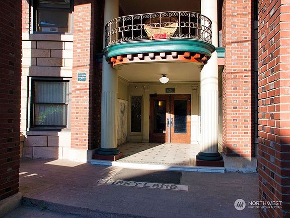 PRICE REDUCED The Maryland is an architectural treasure on the north end of Capitol Hill. Steps from Volunteer Park, restaurants, and light rail. Great room design with 9 ft ceilings, and all the traditional millwork. Abundance of natural light from the many windows. Updated lighting, remote-controlled blinds, remodeled baths, fresh paint, walk in closet, induction stovetop, and SS appliances make this move in ready. Enjoy the west facing views of the Space Needle and Olympic Mts. from one of the 3 shared balconies. Additional storage, bike, project and laundry room. You will love living in this piece of history. The Maryland is on the National Historic Register. Buyer to verify Sq ft.