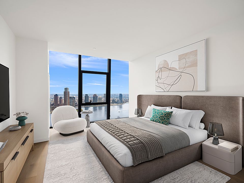 Floor to ceiling glassMiele appliancesBeautiful skyline viewsExpansive closetsCustom wood floorsBlack matte rain showerheadDual floor fitness center