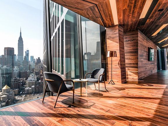 Floor to ceiling glassMiele appliancesBeautiful skyline viewsExpansive closetsCustom wood floorsBlack matte rain showerheadDual floor fitness center
