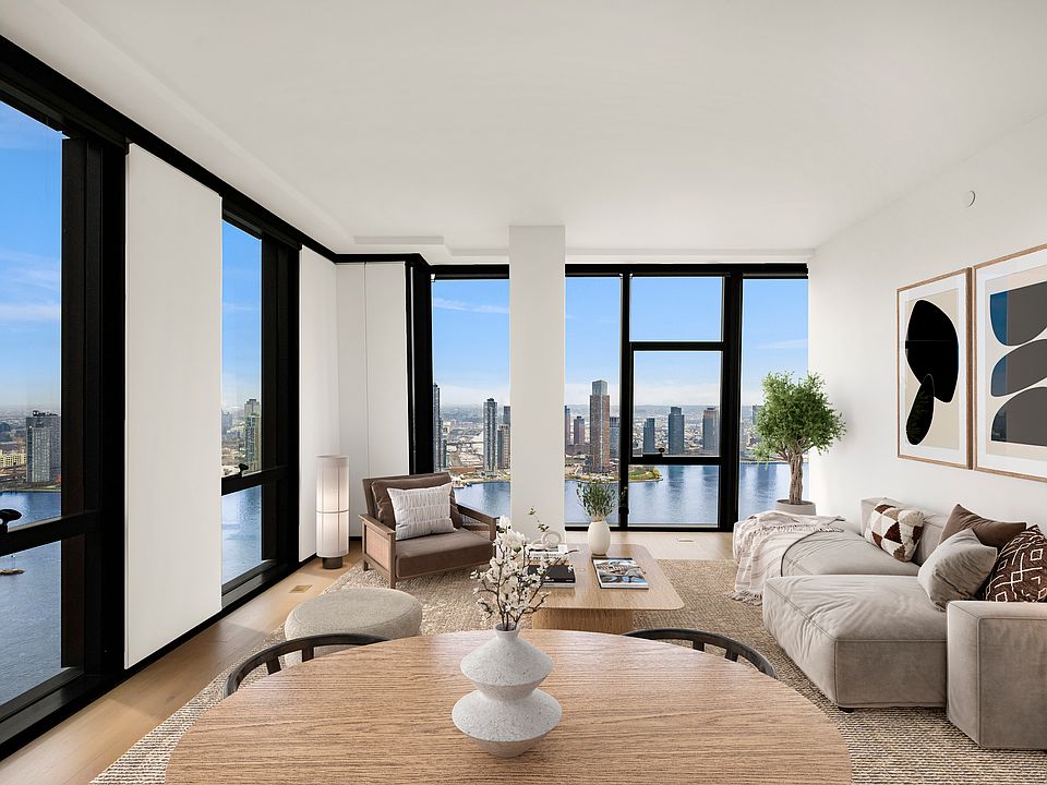 Floor to ceiling glassMiele appliancesCustom solar shadesBeautiful skyline viewsExpansive closetsCustom wood floorsBlack matte rain showerhead