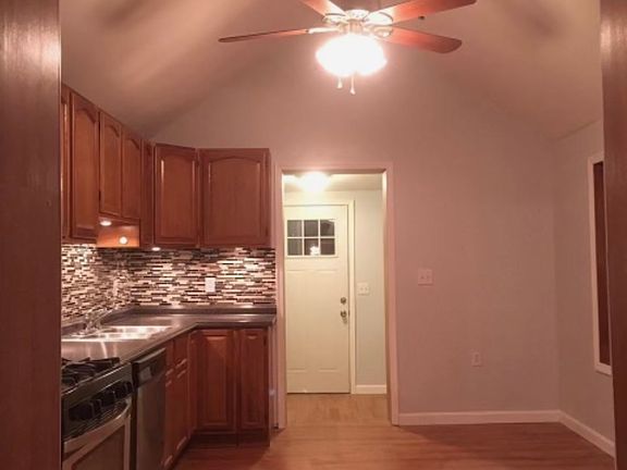 This beautiful two bedroom, one bathroom apartment is located in a quiet neighborhood in Greenridge, Scranton. The main floor consists of pergo flooring throughout the main entrance, living room, kitchen, and laundry room. Tiled floors are placed within the full bathroom located on the main floor. On the second floor of the apartment are two bedrooms with carpeting throughout, including spacious closets with overhead lighting and shelving. The kitchen has tiled backsplash and LED lighting underneath a section of cabinets. It includes all stainless steel appliances: over the range microwave, multi setting dishwasher, 5 burner gas stove, and a side by side refrigerator. Within the kitchen is a designated area to place a dining room table. Off of the kitchen is the laundry room with washer and dryer hook ups in place, (washer and dryer not included). There is room for storage within the laundry room as well as access to the huge backyard. The bathroom contains a full vanity, overhead lighting, & an overhead vent. Lastly, there is a covered front porch with porch lights. Located ~5 minutes away from Marywood University and one minute away from Robert Morris Elementary. **A completed application through Zillow is required prior to touring the apartment as it provides proof of income, background check, and credit check.** Tenant is responsible for paying water, sewer, electric, gas, and monthly rent of $1,200, due upon the 1st of every month. Smoking is not permitted within the apartment. First month, last month, &. security deposit are required upon a one year lease signing.