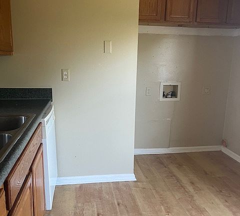 This is a second floor unit. There is a nice sized living room- kitchen has a large pantry and wood flooring. There is central air, washer/dryer hook-up, dishwasher, blinds at all the windows and private parking. Each tenant has a shed for additional storage, I pay water and trash - tenant pays electric. This is located across the street from an elementary school and a park.