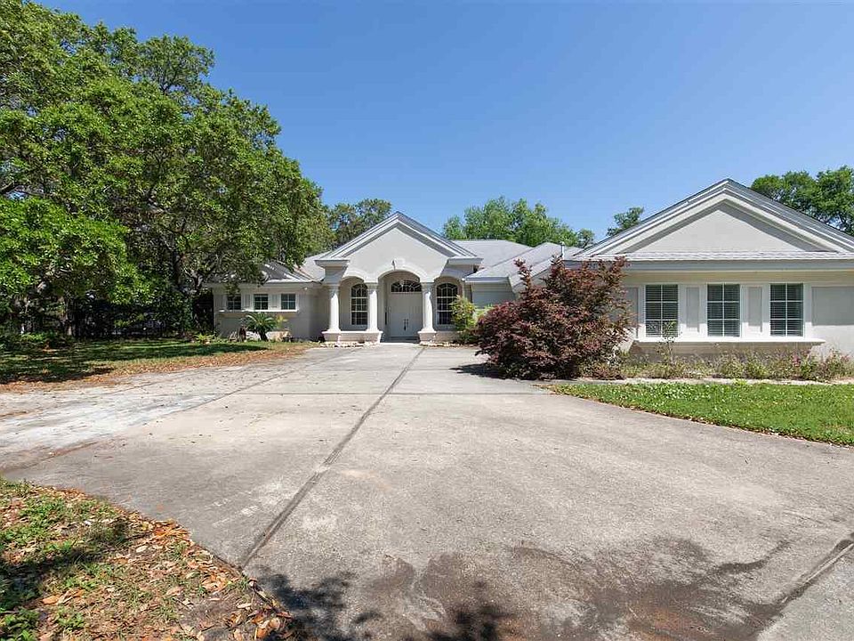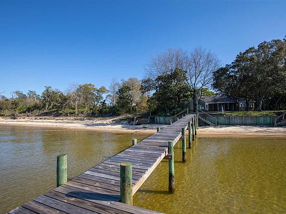 One of the most beautiful, best located lots in Gulf Breeze has just come on the market! Sitting at the east end corner of Bay Cliffs Rd and Pensacola Bay, adjacent to the eastern property line separating Bay Cliffs from the Naval Live Oaks Nature Preserve. The .81 acre lot has beautiful curved oak trees and as well as an Arthur Rutenberg home built in 1998. The deep lot is has mature shrubs ensuring privacy and spectacular views of Pensacola Bay, both sunrise and sunset. The house has a large open kitchen/living area, high ceilings, and abundant natural light from the tall oversized windows. A pantry provides always welcome storage. Designed in the popular split floor plan, the master bedroom overlooks the water, has two walk-in closets and an oversized bath area with deep jetted tub and walk in shower. A separate library/office has French doors and great wall space for storage or display. The additional bedrooms are adjacent to one another and face east. A long circular driveway leads to the two car garage and dramatic front double doors. RV or boat? There's a parking pad available for either! Come see this gorgeous property, walk the lot and you will truly appreciate the location and privacy afforded in this well established and very conveniently located neighborhood!