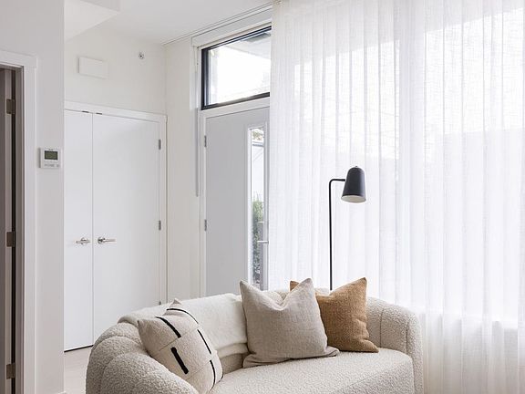 Alina by Strand is a striking 29-storey tower located on a quiet street in West Coquitlam. Completing summer 2025, this brand new, 2-bedroom plus flex, 2.5-bathroom townhome offers 1033 sq. ft. of thoughtfully designed space across two levels. The open-concept main floor features a spacious living, dining, and kitchen area with large windows that fill the home with natural light. The primary bedroom includes a private ensuite, with bonus storage under the stairs. Additional features include a powder room, dedicated workspace, side-by-side washer/dryer, and an EV-ready parking stall. Just steps from Burquitlam Station, it provides easy access to Greater Vancouver while being close to walking trails and shopping centers. Contact our sales team today to learn