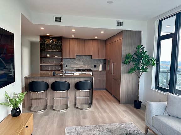 Be the first to live in this brand new luxury furnished 2 bedroom plus den unit! Located on the 22nd floor, enjoy breathtaking panoramic views from every room. Wake up surrounded by the tree lined landscape and end the day on the relaxing large wrap around balcony.