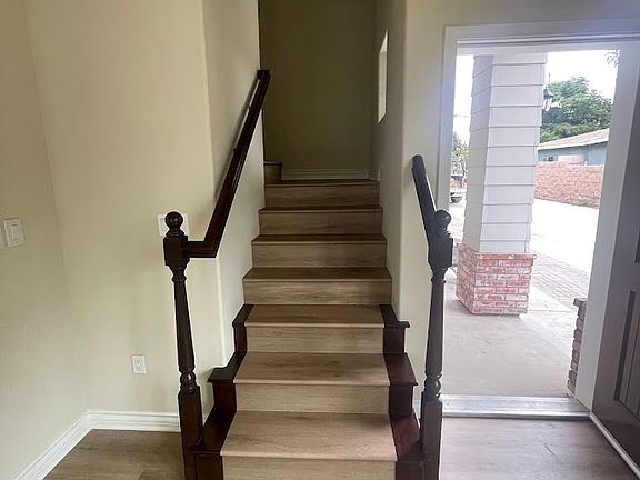 Welcome to your stunning new condominium! This spacious 3-bedroom, 2.5-bathroom unit boasts an open first-floor layout filled with natural light, sleek composite floors, and stylish contemporary finishes. The gourmet kitchen, complete with stainless steel appliances and quartz countertops, is perfect for cooking and entertaining. On the second floor, you'll find all bedrooms, including two cozy rooms sharing a beautiful bathroom, and a luxurious primary suite with an en-suite bathroom and ample closet space. The attached two-car garage includes a convenient washer and dryer hookup, and the unit features a security alarm system with optional 24/7 live monitoring for a small monthly fee. Enjoy relaxing weekends in the shared open picnic area. Tenant Responsible for: Electricity, Gas, Internet. Owner Responsible for: Water and Common Area Landscaping Small pets under 25LBS allowed with separate pet deposit