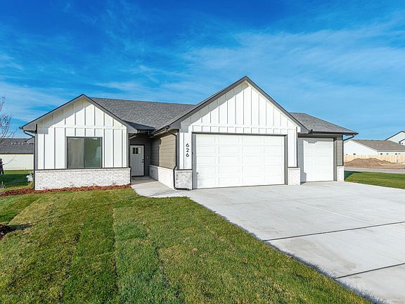 Welcome to 626 Elmwood, offering 1,691 sq. ft. of beautiful zero-entry living in Park City and the highly desired Valley Center School District. This thoughtful floor plan features 4 bedrooms and 3 bathrooms, including two private en-suite suites- perfect for an in-law setup, multigenerational living, or flexible guest accommodations. You’ll appreciate the details throughout: an oversized kitchen island, a spacious walk-in pantry, abundant natural light, modern finishes, and walk-in closets in every bedroom. The open layout is ideal for entertaining and everyday comfort. Situated on a corner lot with a three-car garage, this home sits in one of Park City’s newest and fastest-growing neighborhoods. Park City Incentives include - 75% property tax rebate for the first 5 years & A check for between $2,000 and $5,000 after closing. This is an excellent opportunity to own a new construction home with outstanding value and incentives.