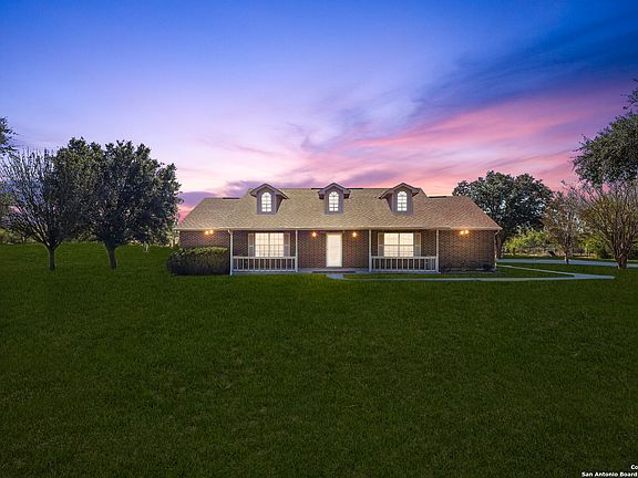 Serene country retreat in the prestigious Estates of Home Place-where peaceful living meets modern comfort on sprawling 5-acres. This meticulously maintained single-story home offers the perfect blend of privacy, space, and thoughtful upgrades, ideal for those seeking tranquility without sacrificing convenience. Step inside to discover a freshly painted interior (2025) that complements the home's warm, inviting atmosphere. The spacious 4-bedroom, 2.5-bath layout includes oversized secondary bedrooms with walk-in closets, a cozy wood-burning fireplace in the living room, and elegant tray ceilings in both the living and primary suite. The primary bedroom features built-in display shelves, a walk-in closet, and an ensuite bath with a garden tub, separate shower, and linen closet. The heart of the home is the kitchen, where trendy green cabinets, stainless steel appliances, a smooth electric range, glass-front cabinets, and a charming brick breakfast bar create a welcoming space for cooking and entertaining. A garden window in the dining area brings in natural light and scenic views, while a Lazy Susan adds accessible storage. All bedrooms are spacious and have ceiling fans. Outdoors, enjoy the freedom of no HOA and the beauty of wide-open Texas skies. Horse-friendly property: Plenty of space for grazing, riding, or future barn additions; detached workshop can easily be converted into a tack room or feed storage. The flexible detached workshop with a 1-car garage door and covered patio is perfect for hobbies or extra storage, and outdoor living. Conveying items include a $5,000 zero-turn riding lawnmower (serviced Nov 2025), edger, workshop table, steel shelves, and utility cart-everything you need to maintain and enjoy your land with ease. Recent updates ensure peace of mind: exterior trim and siding replaced and painted (2025), leaf guard gutters with warranty, energy-efficient water heater (2024), dishwasher (2024), attic solar fan (2023), spray foam insulation (2023), and major foundation and plumbing repairs with transferable warranties (2021). The HVAC system was replaced in 2020 and includes a biannual service contract for optimal performance. Located just 30 minutes from downtown San Antonio, The Estates of Home Place is a quiet, rural neighborhood known for its friendly atmosphere, mature trees, and spacious lots. Nearby attractions include the charming town of La Vernia, local wineries, golf courses, and scenic parks-perfect for leisurely outings and community engagement. Whether you're gardening, relaxing on the patio, or enjoying the stars at night, this property offers a lifestyle of comfort, independence, and natural beauty. Don't miss your chance to own a slice of Texas paradise tailored for your next chapter.