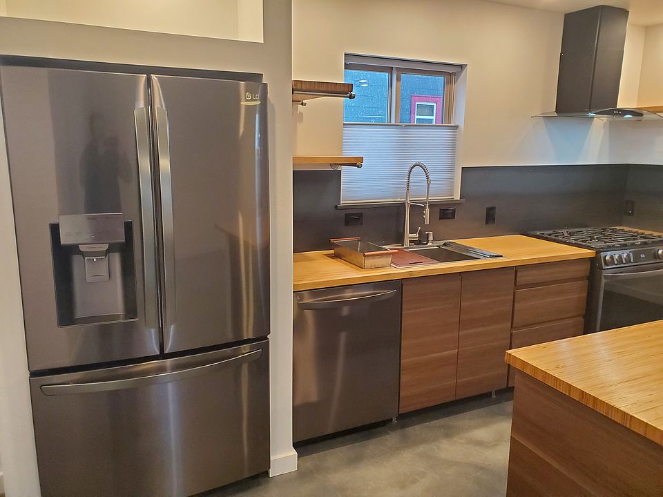 Newly constructed home nestled in the heart of the Northside neighborhood. 1541 sq ft. of living space with 3 bedrooms, 2.5 baths and a tuck under single-stall heated garage. Modern kitchen with black stainless-steel appliances. Open concept kitchen and living room with spacious island and countertop seating on the main floor, perfect for both everyday living and entertaining. Polished concrete radiant floor heating throughout is stylish, durable and energy efficient. Home comes with a central vacuum system, stackable W/D, and in-ceiling speakers. A small landing at the top of the stairs provides a perfect place for an office or reading nook. The spacious owner's suite feels like a retreat with walk-in closet and ensuite bathroom. Outside is a fenced, zero-scaped front yard with a curved sidewalk. Fabulous location close to everything!