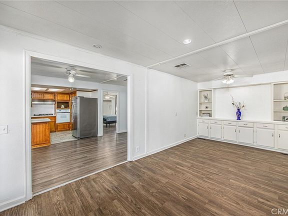 This beautifully maintained, double-wide and light-filled 2-bedroom, 2-bath home is located in the desirable all-ages Orange Grove Mobile Home Estates in Redlands. Enjoy an open-concept kitchen, dining, and living area—perfect for everyday living or entertaining. A flexible bonus space between the kitchen and dining room serves perfectly as a family room or sitting area. The indoor laundry room located just off this bonus space features newer washer/dryer and convenient access to the covered two-car carport and storage shed. The kitchen features a newer dishwasher, gas cooktop, built-in oven, new stainless steel range hood, and a pantry with abundant shelving, while built-ins in the dining room and secondary bedroom add charm and functionality. The en suite primary bedroom has generous closet space (new door to be installed) and bathroom has dual-sink vanity and walk-in shower. The secondary bedroom offers direct access to the hallway bathroom and has new sink.