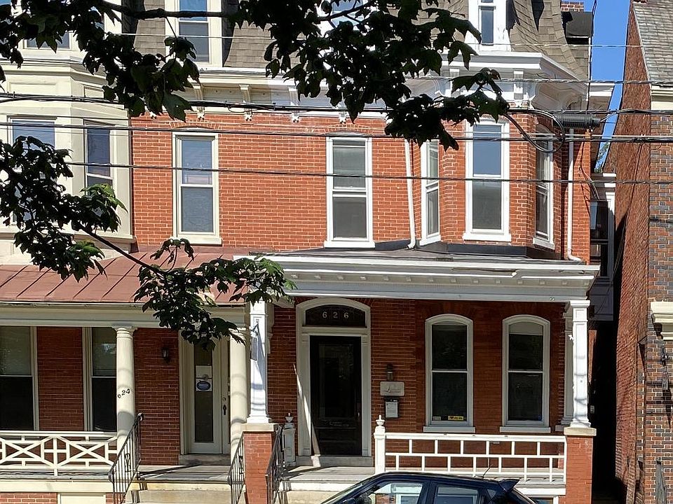 626 North Duke Street is a classic Victorian semi-detached brick townhouse converted into a first -floor office & a huge 3-bedroom apartment on the 2nd & 3rd floors - with over 1,600 SF, this apartment is as large or larger than many city houses! North Duke Street was once called the "Fifth Avenue of Lancaster!" The office consists of a large open room in front, a conference room, private office, work area, and 2 powder rooms. Most of the rooms feature custom millwork - bookcases, shelving, & storage cupboards. This first floor is centrally air conditioned. The apartment, which does not have air conditioning, includes a front living or family room with built-in cabinets & shelving, along with a turret. Behind this front room is the 2nd floors only bedroom. A middle room with a side bow window (just re-built) functions as a living room or formal dining room. The enormous retro-50's kitchen is divided into a work area & an informal eating The Victorian bathroom retains its curved tub with shower, pedestal sink, railroad wall tile, & hexagonal floor tile. A laundry room with clothes washer & dryer is at the very rear of this 2nd floor. A rather grand stairway & landing lead up to the 3rd floor with its 2 bedrooms; the front room has a smaller turret area. These upper floors are not air conditioned. The lot extends from North Duke Street to North Christian St; the rear has been paved as a 6 or 7 space parking lot accessed from N. Christian & exiting onto E New St. There is deeded easement on the 38 East New Street that allows this property to use the egress to New Street. The New Street property, a single family residence, can be purchased with this Duke Street property for $187,900; see PALA2072856 This property is sold as is, although the front porch roof and a remaining metal roof have been replaced with rubber along with re-building a side bow window in 2025. The owners, both licensed Pennsylvania real estate agents, who may share in the profit or loss of the sale, have no knowledge of any material defects and are not interested in correcting a minor deficiencies discovered by any inspectors.