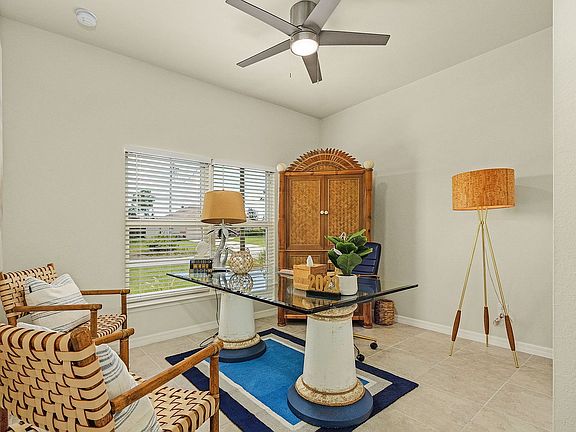 Discover this nearly new one-year-old construction home in the heart of Cape Coral, featuring 4 spacious bedrooms (or 3 + study), 2 baths, and a rare 3-car garage. This home is loaded with upgrades designed to impressfrom sleek 18-inch ceramic tile floors throughout to 42-inch wood cabinets with soft-close hinges and luxurious granite countertops accented by a stylish tile backsplash.