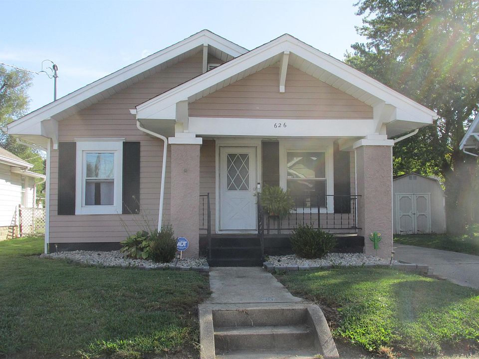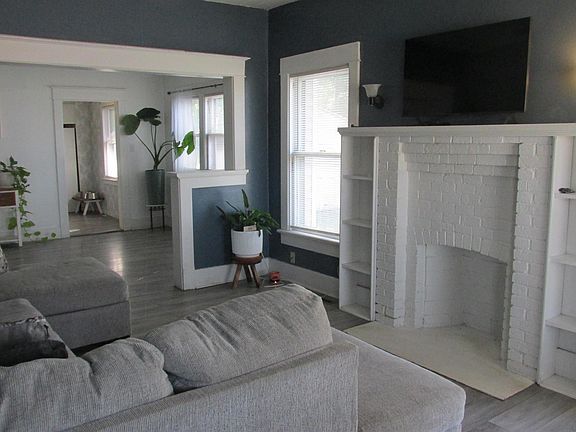 This home features spacious rooms that are ideal for hosting guests and accommodating family gatherings. Both the covered front and back porches offer inviting spaces for morning coffee or evening conversation. The expansive living room includes a closed fireplace and built-in bookshelves, while abundant windows provide ample natural light. The dining room is versatile and suitable for use as a traditional dining area, office space, or other functional purposes. The extra-large kitchen provides potential for adding a third bedroom if desired. The bathroom has been updated with a step-in shower and newly tiled walls. Additionally, the roof is less than three years old, and the water heater was installed last month. A privacy-fenced backyard offers a great opportunity for outdoor activities. The detached garage is equipped with shelving and a workbench on one side, with parking available on the other, complemented by additional parking in the driveway.
