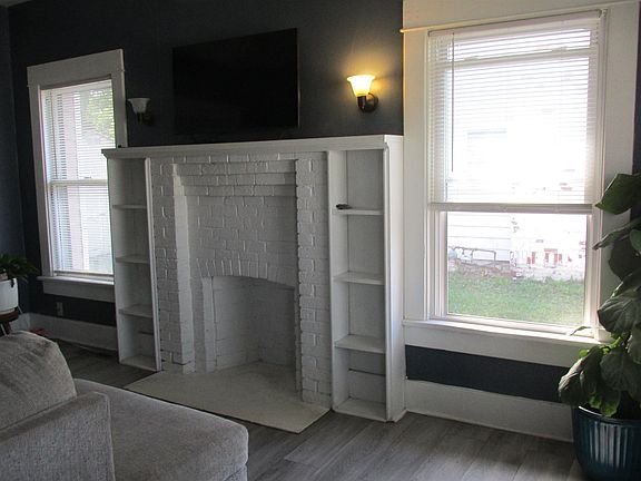 Closed fireplaceAbundant windowsAmple natural lightBuilt-in bookshelvesPrivacy-fenced backyardSpacious roomsExtra-large kitchen