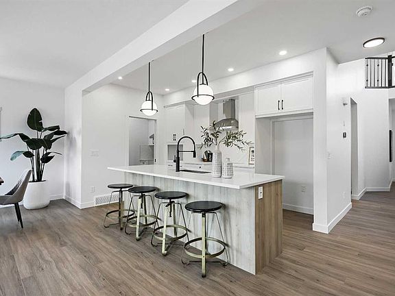 Focal point fireplaceOpen-concept layoutDedicated dining areaStunning kitchenQuartz countertopsCentral islandFull-height cabinetry