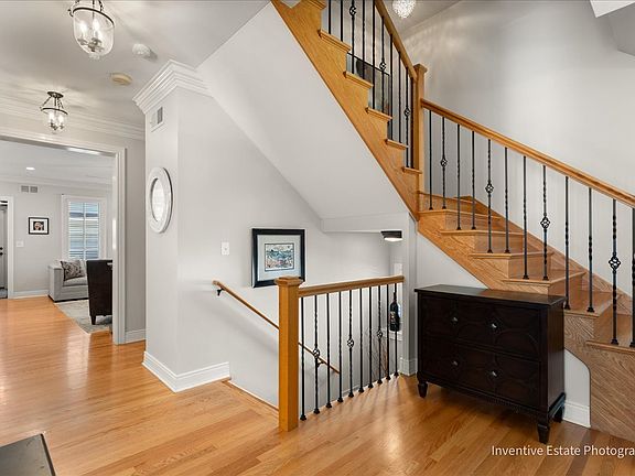 This stunning home, reimagined by a local designer in 2020, is perfectly situated on one of Hinsdale's most desirable streets. The open, sun-filled floor plan features gleaming hardwood floors throughout. The gourmet kitchen offers a large quartz island, an eat-in area, a butler's pantry with access to the formal dining room, and a walk-in pantry. The adjacent family room showcases a beautiful stone fireplace, creating a warm and inviting gathering space. The 2nd level includes four spacious bedrooms, walk-in closets, plus a balcony. The versatile 3rd level provides a bedroom, office space, and full bath-ideal for guests, work, or play. The fully finished basement adds even more living space with a large recreation room, brick fireplace, custom built-ins, and a bathroom. Enjoy outdoor living on the expansive bluestone patio with a custom-built fireplace, or relax on the charming front porch overlooking the tree-lined street. All within walking distance to Madison Elementary, downtown Hinsdale, and the Metra train-this home is truly move-in ready. See home "special features" for a list of updates.