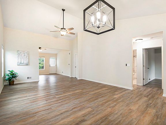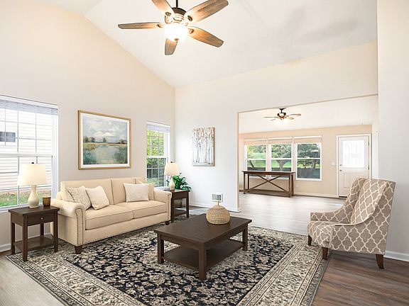 Beautiful End-Unit Ranch Home in the 55+ Community of Bradford Place! This move-in ready home features fresh, modern updates throughout. The spacious open-concept layout boasts vaulted ceilings in the living room, dining area, and a separate family room-perfect for relaxation or entertaining. Enjoy a freshly painted interior complemented by new luxury vinyl plank flooring that flows seamlessly through the home. The generously sized primary suite includes a private bath with a full-sized shower, and a walk-in closet that's larger than many bedrooms! The eat-in kitchen offers all new stainless appliances, maple cabinetry, space for a table or island, and two oversized pantries for abundant storage. A separate laundry room includes a newer washer and dryer, plus a new hot water heater. The attached garage is extended for all your storage needs. Step outside to your private patio, surrounded by mature trees and professionally maintained landscaping-offering a peaceful and scenic retreat with walking path, gazebo and pond nearby.