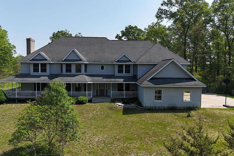 Your private retreat on 78 acres of Pure Michigan beauty! Tucked away in a serene setting and bordered by National Forest, this exceptional 78-acre property offers the perfect blend of privacy, space, and modern comfort. Built in 1993, this expansive home features over 4,600 sq ft of living space, including 7 spacious bedrooms, office, den, & workshop, providing plenty of room for family, guests, or a future business. All 7 bedrooms are upstairs, with 3 full baths, while the main floor includes a large family room, office spaces and a convenient laundry room. Step outside and unwind on the charming half-covered porches that wrap around the home—ideal for enjoying peaceful views. There's plenty of additional space for expansion w/ a 3 car attached garage & impressive 40' x 60' pole barn, & unfinished walk-out basement offers endless options. There's also a 30' x 30' fenced dog kennel w/ concrete pad. High-speed internet available, and conveniently located near Manistee.