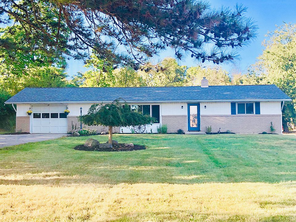 Situated in Moorefield Twp (NE schools) you, far back from the road, you will discover this great 1 level 3 bd 2 ba home with a full unfinished basement. Solid construction; steel beam and block construction. Situated on 1.25 wooded acres and backing up to the woods. Many updated have been made including: roof (2011), 2 pane windows, new composite vinyl flooring, fresh paint, updated water heater, many new 6 panel interior door and trim. An abundance of natural light in every room and great views of the nature as well. Eat-in kitchen with a peninsula. En-Master suite measures at 20x14 ft and has a large closet and a full bath with a shower. Back yard deck and patio can be accessed from the double doors from the en master suite and from the dining room. Hallway bath has a soaking tub. Large living room with built ins. Attached garage with a large driveway and turn around is perfect for large gathering. Fully fenced In-ground pool. Tree stand to stay.