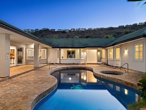 Experience the perfect blend of island elegance and modern comfort in this rarely available single-level custom home. The open layout with high ceilings flows into a chef’s kitchen with Viking and Sub-Zero appliances—perfect for casual meals or entertaining friends. The expansive primary suite offers relaxing views of the pool and garden, plus a spacious walk-in closet and spa-like bath. A second suite with its own entrance and bath adds flexibility for guests, extended family, or a caretaker. Just outside is your own retreat with a lava rock waterfall, saltwater pool, and spa surrounded by tropical landscaping—ideal for unwinding or weekend gatherings. Natural light fills the home, while central and split A/C keep it comfortable year-round. A two-car garage, full lava rock wall, tile roof, and 44-panel PV system add convenience and efficiency. Close to markets, restaurants, schools, beaches, parks and freeway access, this home blends elegance, comfort, and unmatched convenience.