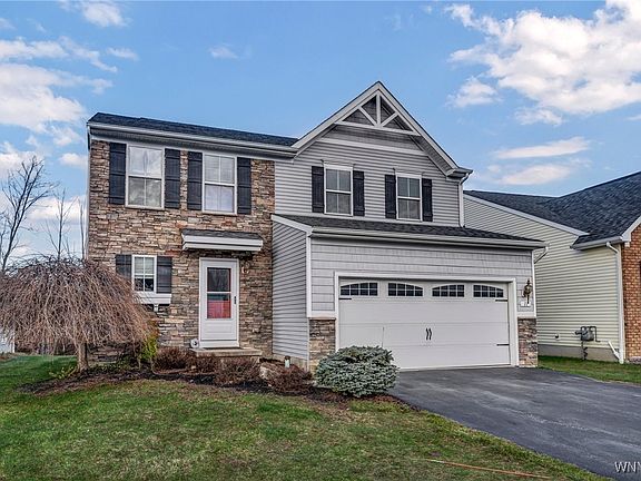 VR Pricing! Seller considering offers starting at $300,000 - $324,900+! Beautiful 3 Bedroom, 2.5 Bath Home in a Prime Neighborhood! This newer-built, one owner home features a stunning stone and vinyl front welcoming you with a charming entryway, coat closet, and a convenient half bath. The large living room flows seamlessly into the bright, fully-applianced eat-in kitchen, complete with abundant cabinets, counter space, a walk-in pantry, and a versatile morning room—perfect as a dining area, office nook, or play space. Sliding glass doors lead to a stamped concrete patio overlooking a serene wooded backyard, ideal for relaxing or entertaining. This functional layout features a mudroom off the attached 2-car garage (with opener) and adds convenience to daily living. Second Floor includes a large laundry room equipped with a washer and dryer, 3 roomy bedrooms and are all designed with excellent closet space. Owner’s Ensuite complete with an oversized bedroom with a fabulous walk-in closet and private bath offering abundant storage. The full, dry and insulated basement includes a workshop bench area and offers potential for additional finished living space. The Low HOA fee ensures you can spend your time enjoying life rather than maintaining your property. Included services: Lawn cutting, annual mulch, weeding, and trimming of front landscaping beds, snow removal (driveway and front walkway) AND Water bill! Just minutes from the Thruway and Southwestern Blvd, you'll have easy access to coffee shops, restaurants, shopping, and all conveniences! High Efficiency furnace serviced 3 years ago. 4 year old 4-person hot tub can stay or be removed! Great value for the price on this property! Showings begin at the OPEN HOUSE Sat 1/4 at 1pm! Offers to be in by Thursday 1/9 at 12pm! Also- OPEN HOUSE Sunday 11-1pm!