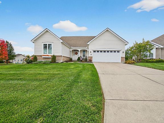 Desirable ranch in Heritage at Miami Bluffs, a sought-after 55+ community offering low-maintenance living, bike trail access, and resort-style amenities! This beautifully updated home features New Pella windows and vinyl siding, a remodeled kitchen with granite counters, new flooring, and a spacious island that opens to a cozy family room with a new fireplace and walkout to a covered deck-perfect for relaxing or entertaining. The primary suite offers a walk-in closet, double vanity, and walk-in shower. You'll also enjoy a remodeled guest bath, 1st-floor study, newer HVAC, and newer garage door and opener. The full basement with a full bath rough-in provides endless possibilities for future living space or storage. Enjoy easy living in one of the area's most desirable active-adult communities, just steps from the Little Miami Bike Trail!
