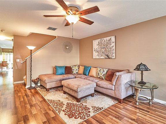 This spacious townhome has been well maintained and is move in ready.. Private gated community with pool and playground area. . There are two bedrooms and two baths upstairs. There is also a flex room that could be used numerous ways. The downstairs includes the kitchen that has stainless appliances that have all been replaced in the last few years. There is a pass through window to the dining room. The half bath downstairs also has the laundry closet. The rear living area has sliders that lead out to the screen enclosed porch and allows you to view the beautiful back lawn area. The rear porch also has a storage closet. Downstairs has newer laminate that is very inviting. It is near shopping, hospitals, restaurants and schools