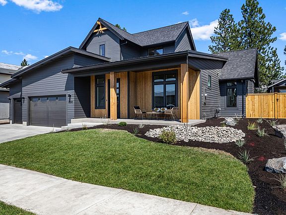 Welcome to this new contemporary NW style home in the highly sought-after neighborhood of Shevlin West. This exquisite home, built by Bruce Wiechert Custom Homes, Inc, offers a blend of luxury, comfort, and contemporary design. The stunning open floor plan features beautiful wood beams, wood flooring, and vaulted ceilings that create a welcoming atmosphere. The heart of the home is the gourmet kitchen with rift oak cabinetry, an expansive island with a waterfall quartz countertop, and top-of-the-line SS appliances. Natural light floods the interior through expansive windows, highlighting the immaculate craftsmanship and attention to detail. This luxurious home includes a 3-car garage, 4-spacious bedrooms, and a bonus room, some rooms offering panoramic Cascade Mountain views. Outside, enjoy multiple entertainment areas, full landscaping, a fenced-in level lot, and the upcoming Manzanita Ridge Park just steps away. Come and find your perfect home in Shevlin West.