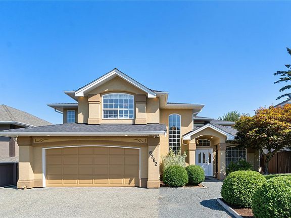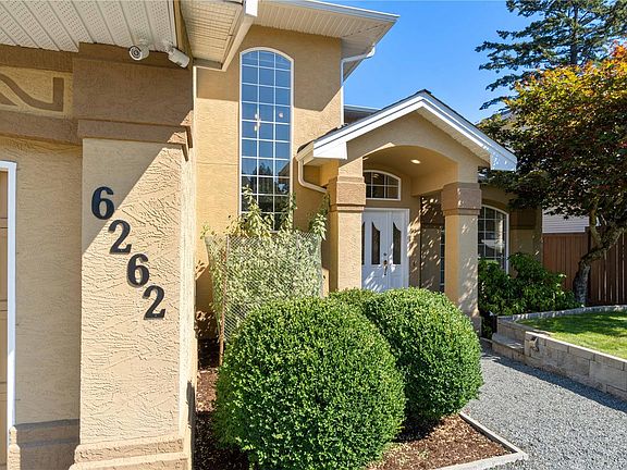 Welcome to 6262 Azure Road, a stunning 5 bed + den, 5 bath home designed for family living and entertaining. Just a short walk to two beach accesses, this home features gorgeous natural light, granite countertops, his & hers closets, a workshop, natural gas forced-air heating, ample storage, & much more. Step outside to your fully fenced private oasis with a fully irrigated vegetable and herb garden, including tomatoes, peppers, jalapenos, kale, celery, leeks, chives, rosemary, sage, cilantro, marjoram, & raspberries. A greenhouse, large deck, and grassy yard complete the space - perfect for relaxing, gardening, or entertaining. The lower level offers a kitchen/bar area & entertainment room including a pool table, plus suite potential with a separate exterior access, bedroom, and bathroom - ideal for guests & family. With thoughtful design, quality finishes, and incredible indoor-outdoor living, this home truly offers space, comfort, and lifestyle in a prime Nanaimo location.