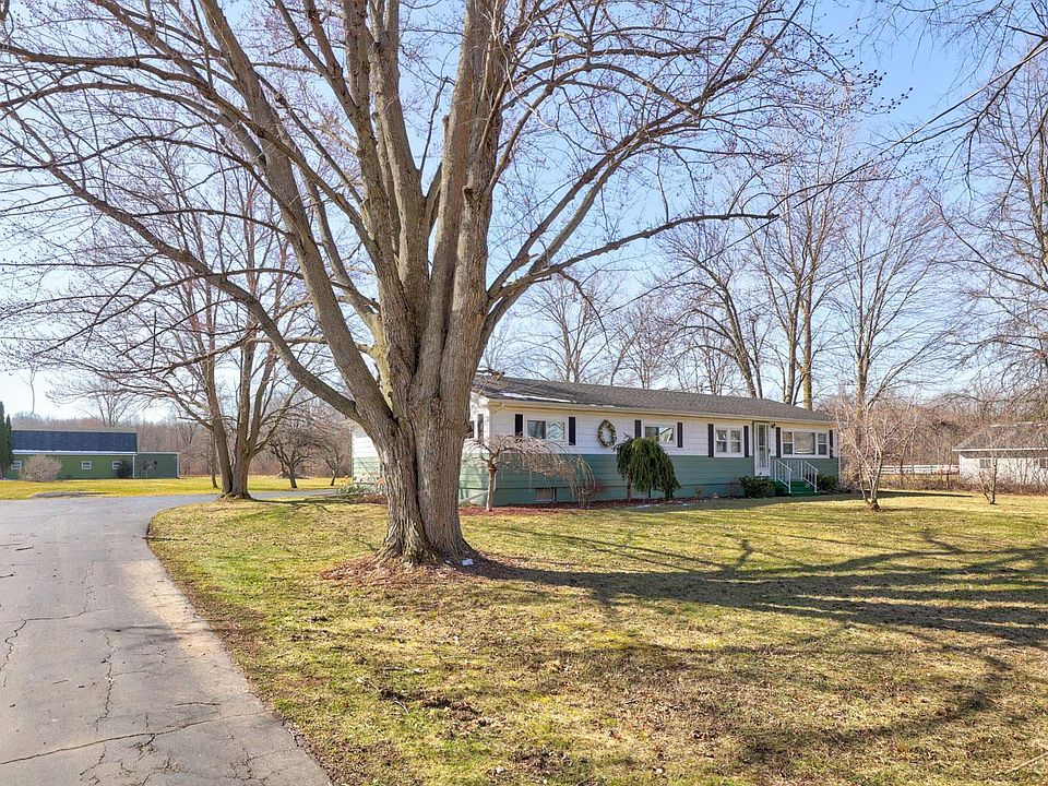 Nestled among 35 acres of serene country living, this charming ranch style home, with 3 bedrooms and 2 baths spread across 1772 square feet, exudes comfort and tranquility. As you approach you will be greeted by partially wooded landscape and lush greenery. Inside you will benefit from a thoughtful floorplan. The kitchen with ample counter and cupboard space is the heart of the home with proximity to the large dining area and enclosed sunroom that doubles as a mudroom or family room. Entertainment and relaxation seamlessly blends in the spacious living room, offering an inviting atmosphere. The primary ensuite offers privacy and extra closet storage. Practical features abound, including first-floor laundry plumbing, full and clean basement, a sump pump with backup, and cedar lined closets. Newer windows flood the space with natural light, illuminating the newly laid carpet and luxury vinyl tile flooring. Outside, the sprawling acreage invites exploration and enjoyment of the great outdoors with a detached 3 car garage with storage, horse stable and tack room, extra barn, greenhouse, and fruit trees adding to the allure of this countryside retreat. Immaculately maintained and exceptionally cared for, this home is a testament to the family legacy who loved it. Above and beyond, city water graces both the home and barn. The allure of this location is further enhanced by its proximity to Frankenmuth, Birch Run, and the convenient access to I-75. Welcome home to a place where every detail is infused with love and extra care, creating a haven you'll be proud to call your own.