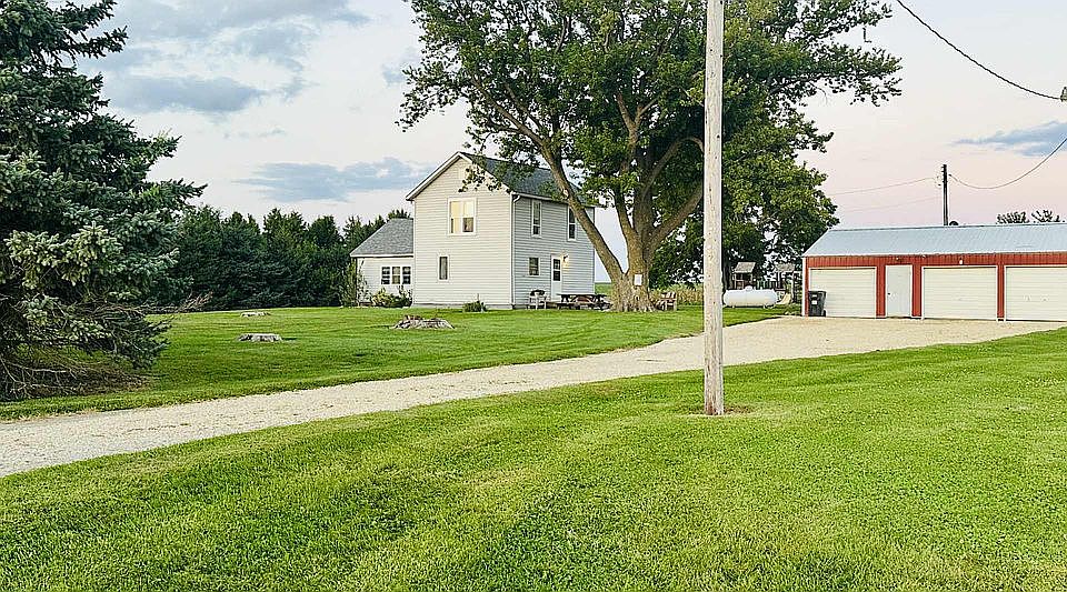House has new roof about 5-6 yrs ago. Downstairs has been gutted over the past 20-25 yrs. All appliances stay. Septic will need to be updated per Fayette County code; that cost makes the price negotiable. Garage is 3 stalls. Pole building (30x60) has an enclosed lean-to that has a box stall. Well established grove of trees to the north and west.