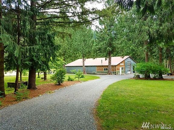 Picturesque property surrounded by mountains and river includes 275' of river frontage and 7.2 acres including fruit trees, blueberries, massive flower beds and lush fields. Great barn w/3 stalls, attached gravel paddocks, new tack room, loft area and lots of storage. Property is fully fenced. Bring your horses! Over sized 4500 sq ft outbuilding w/insulated heated shop and office. 2 bd 1 bth home has newer floors, gas fireplace, Marvin wood windows. This one is a must-see!