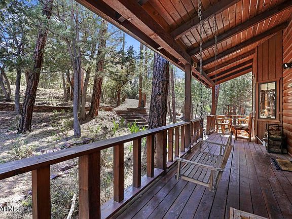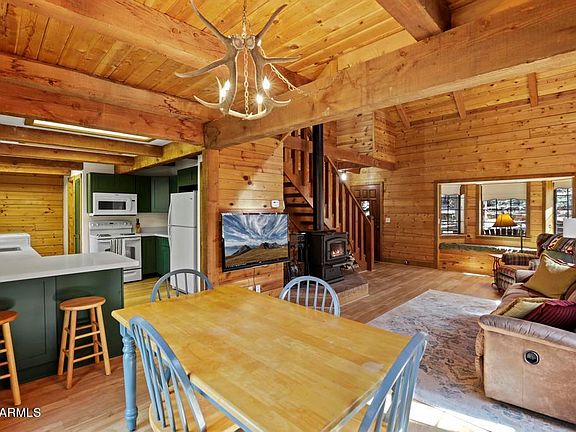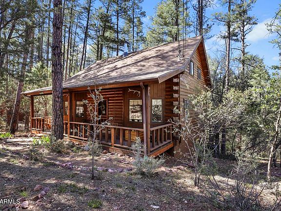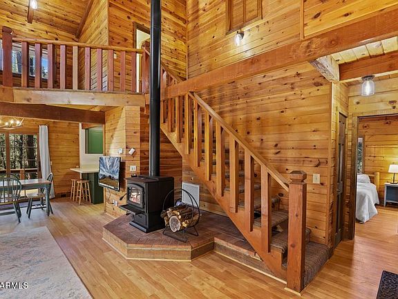 Welcome to your tranquil cabin retreat nestled on .51 acres, with a seasonal creek at the rear of the property. Updated in 2024, the kitchen dazzles with new cabinets and quartz counters, complemented by the updated LVT flooring and modernized master bath. Featuring a primary room and bathroom on the main floor, along with two additional bedrooms and a loft upstairs, this cabin offers flexibility for relaxation and hosting. Enjoy year-round comfort with both heating and cooling systems. Entertain on the expansive deck out back or unwind on the covered patio in front. The basement/storage area with electricity opens opportunities for a workshop or potential suite. Whether seeking a getaway retreat, Airbnb/VRBO (No HOA), or permanent residence, this cabin offers a perfect blend of comfort.