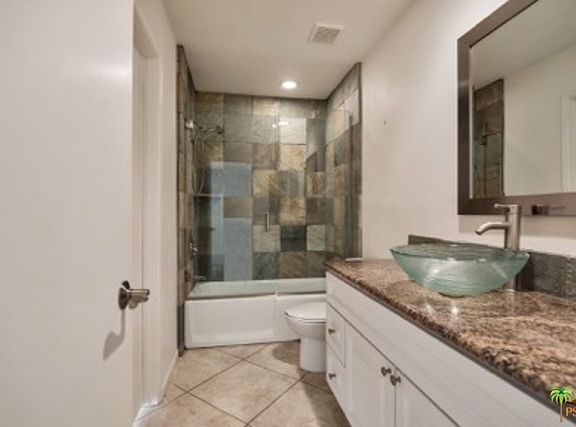 Great Floor Plan In this 2 Bdr. 2 Bth. Single story unit with two car garage with direct access from your private gated courtyard entry with patio area. Also two small patios off back sliders. Diagonally set ceramic tile flooring though out. Granite countertops in kitchen and baths. Both shower and tub/shower have slate surrounds. Custom glass sinks. Beamed ceiling with ceiling fans and mirrored wardrobe doors. Kitchen has stainless steal appliances and microwave hood. Recessed and pendant lighting over breakfast bar. Close to shopping. 6 pools and 3 spas.
