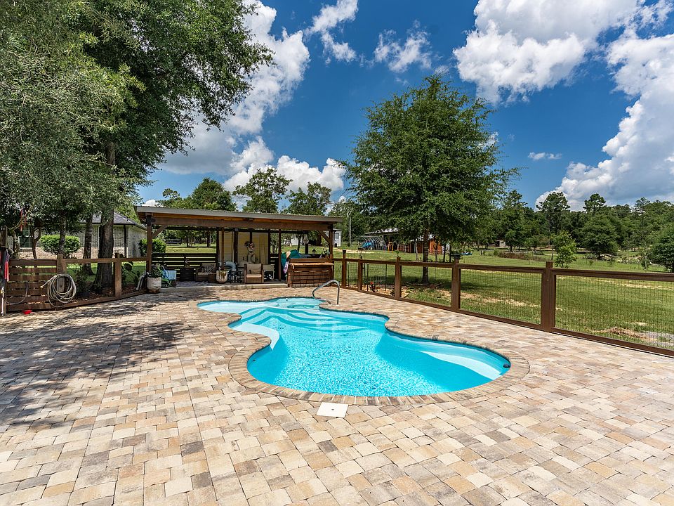 This property is a horse lover's dream, providing everything you need to care for and train your horses. The 24 acres offer plenty of lush pasture for grazing along with ample space for riding. Completely fenced-in property backs up to Yellow River Water Management for privacy. The focal point of the property is the gorgeous brick home. This immaculate home boasts LVP flooring, granite, gas fireplace and an open floor plan. Plenty of room for family and friends to gather while the breakfast bar seats 6 comfortably. The kitchen is designed with ample granite counter space, custom cabinetry and overlooks the family room. A split floor plan provides privacy for the entire family. A Generac whole house generator will provide you with peace of mind. Step outside to discover your personal oasis: an inground salted/heated pool which is perfect for cooling off on warm days and a hot tub for relaxing under the stars after a long ride. An outdoor shower is next to the pool for your convenience. The property has two wells, one measures 350' deep while the other is a spring well measuring 125'. They are tied together. A bubbling stream runs midway down the property. Diverse wildlife frequents the wooded back portion of property.. . This property is perfect for anyone seeking a peaceful, private retreat with plenty of space to roam.