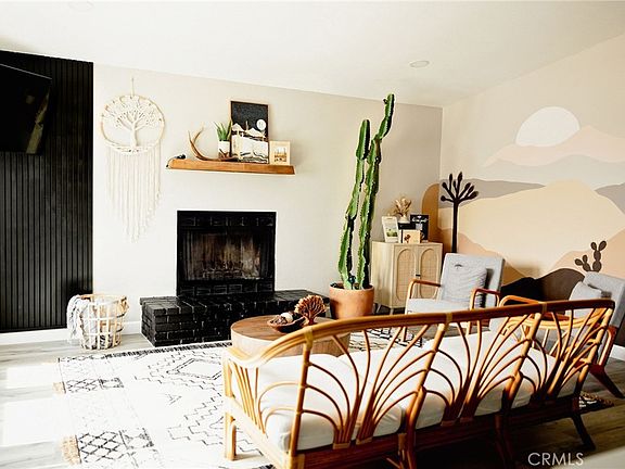 Looking for cozy desert vibes? Welcome home! This stunning turn-key 2 BR / 1 BA has been operating as a successful Air BnB rental for the past year. The house has been completely and very tastefully renovated and has an additional 264 sq. ft. space currently being used as a study or guest room and a sunroom with back yard access, which is separated by a recently installed barn door. The kitchen is very well-appointed and has brand new stainless steel appliances throughout, as well as a beautiful backsplash. The living room area has a custom desert mural and accent wall and has a spacious and guest-friendly layout. The two bedrooms in the back of the home are large enough to fit most furniture combinations, each with custom work done to the back wall, as well as mounted smart TVs. The back yard is a host’s dream. It has fresh concrete work on the patio, a brand new corrugated steel fence for privacy, as well as a fire pit, cowboy pool with plank deck, and custom-built hammock swing pergola. Use the telescope to peer into a stargazer's paradise, with dark sky territory offering unparalleled views of the cosmos. The property has a two-car garage and Samsung washer/dryer. Additionally, the front of the home has been improved with the installation of a patio swing and extension of the driveway to the street. You’ll be in close proximity to local restaurants, Joshua Tree National Park, and just ten minutes from Marine Corps Base 29 Palms. The property is being sold with all appliances and permanent back yard amenities. Remaining furniture and décor are negotiable depending on offer price.