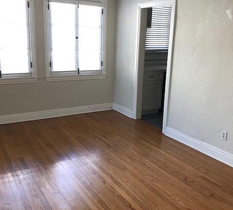 Large Upper unit in Carthay Circle Mediterranean building. Quiet 4-unit building. No Smoking property. Refinished oak floors, bedrooms carpeted, central air conditioning/ heating, remodeled kitchen and bathroom in retro style. Kitchen includes stove, refrigerator w/icemaker, microwave, dishwasher. Washer - dryer in unit. One car garage. Street parking by permit. Owner pays water.