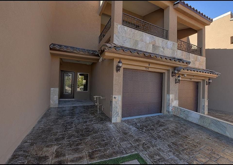 New custom construction and contemporary living near St. Francis Church & Coronado Country Club with terrific views! Simple and elegant 3 bedrooms/2.5 baths, REFRIGERATED AIR/1 car garage+1 car parking in driveway with classy stained concrete with zero maintenance yard. Upgrades include designer tile, charming covered entry, high ceilings, recessed lighting, laundry room, and living room/dining room. Open concept kitchen with granite island, stainless steel appliances including gas stove, dishwasher, microwave. Master Suite includes French door to shady spacious balcony where you can enjoy incredible mountain views! Master bathroom with double sinks, linen closet, granite counters and custom tiled shower/tub. Low maintenance front yard, tiled entry! Energy efficient features include over-sized double pane windows and R19/R30 insulation; brilliant views! Available for pre-sale. Photos for representation purposes only.