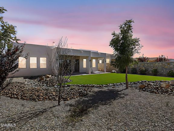 This never-lived-in MODEL HOME redefines modern luxury with 4 bedrooms, 4 bathrooms, and 2,609 sq. ft. of open, light-filled living space. Set on a fully landscaped, nearly 1/4-acre lot bordered by a park and walking path, it offers beautiful Organ Mountain views and a peaceful setting. The all-tile interior includes a gourmet kitchen with quartz countertops, stainless steel appliances, and a huge kitchen island. A separate living space provides ultimate flexibility--featuring it's own bedroom, living area, full bathroom, walk-in closet, sink, mini fridge, microwave, and it's own entrance from the front yard--perfect for guests, multi generational living, or extended stays. The home also includes an air-conditioned garage, surround sound speakers throughout, tank-less water heater, sliding 3-Panel backdoor, and elastomeric roof. Just minutes from Red Hawk Golf Course, this property delivers elegance, convenience, and high-end upgrades throughout! Don't Miss Out!!