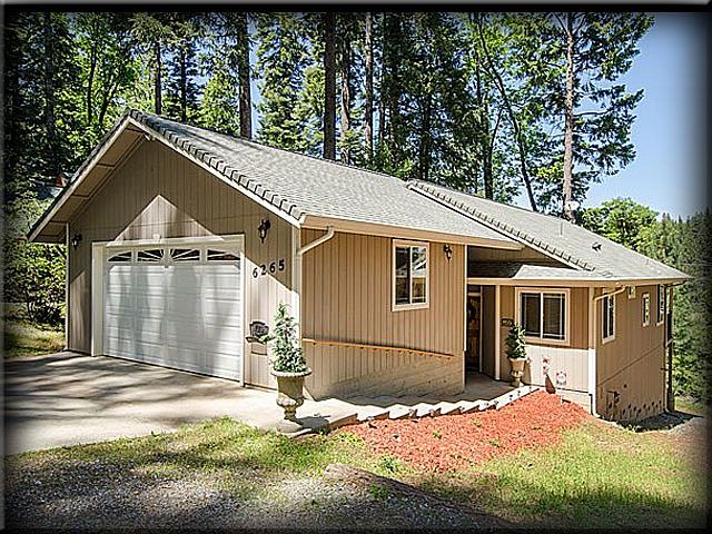 Modern home with VIEW of Forebay Lake. Borders over 25 acres of EID land for added privacy. Walk to lake and feed the ducks! Nearly new 3/2 with attached double garage. Driveway is HEATED with propane water heater for easy snow removal. Lots of upgrades including vaulted ceilings, granite and more.