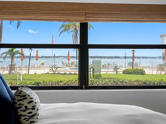 LUXURY WATERFRONT LIVING—DESIGNER FINISHES, POOL, SUNSET AND BOAT WATCHING VIEWS! Step into this FULLY remodeled, TURNKEY 2-bedroom, 2-bath home where no corner was cut and no inch spared. This first-floor residence offers high-end finishes, PREMIUM furnishings, and a front-row seat to PARADISE—with sweeping views of the heated pool, lush landscaping, passing boats, and vibrant northwest sunsets over the Intracoastal waters of Boca Ciega Bay. From your screened-in patio—complete with a tiled floor and private storage closet—you’re just steps away from the pool, spa, and scenic waterfront walking path. Watch the mega yachts as they make their way out to the Gulf! Inside, the chef-inspired kitchen features white Shaker-style soft-close cabinetry with modern hardware, marbled quartz countertops, stainless steel appliances, recessed lighting, and abundant storage. There’s room for an eat-in breakfast table, coffee bar, or modern kitchen hutch if desired. The open layout flows seamlessly from kitchen to dining to living room, where large sliders frame the water, boats, and tropical scenery beyond. The dining area offers space for family gatherings, entertaining, and even a large, stylish sideboard with storage—a sure conversation starter! The primary suite boasts gorgeous pool and water views, a generous walk-in closet, and a spa-like ensuite with premium designer finishes. Enjoy a quartz countertop vanity and a frameless glass walk-in shower with designer hexagon tile flooring, a custom tile inset, and a built-in bench seat. The split-bedroom plan ensures privacy for guests, with the second bedroom located beside the updated guest bath. A separate laundry room includes a new washer/dryer. Throughout the home, you’ll find smooth ceilings, new high-quality flooring, solid-core doors with nickel hardware, and updated lighting and WINDOW COVERINGS. Have peace of mind with hurricane shutters on all windows and the patio, a 2024 HVAC, and the convenience of ground-level assigned covered parking (#148)—no elevator needed. Offered fully furnished with top-grade furniture, cookware, bedding, and décor, this property is truly move in or rental turnkey ready. According to AirDNA’s Rentalizer, it could generate $44,000 annually at 73% occupancy, making it an excellent investment, full-time residence, or vacation getaway. Life here feels like a resort every day—with the option to join the Isla Del Sol Yacht & Country Club, offering golf, clay tennis courts, pickleball courts, yacht, or social memberships, all just a short stroll away. You’re minutes to Fort De Soto and St Pete Beach's award-winning beaches, the charm of Pass-a-Grille, and the vibrant restaurants and nightlife of downtown St. Petersburg. Easy access to I-275 gets you to Tampa International Airport in under 30 minutes. The “Island of the Sun” is golf cart-friendly, with peaceful streets lined by mature banyan trees and the cheerful songs of wild green parakeets. Schedule your private showing and experience the perfect blend of coastal luxury, boating activity, and breathtaking sunsets.