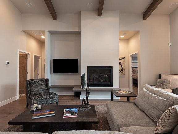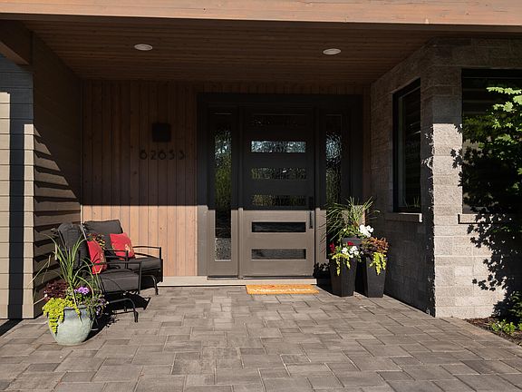 Amazing single level custom home built by Rundle Construction located in NW Bend! Spacious modern layout with beamed vaulted ceiling plus wall of windows leading out to paver patio with gas fireplace and TV. Kitchen is fully equipped with Thermador appliances, custom cabinets, built-in refrigerator and wine cooler, large island with quartz countertops. Butler pantry with dishwasher, refrigerator and prep space for entertaining. Primary suite has beamed vaulted ceiling, fireplace and separation for privacy. Primary bath with a soaking tub, curbless walk-in shower, skylights and large walk-in closet with built-ins. Guest suite features full bath, tile shower, walk-in closet and built-ins. Third bedroom has vaulted ceiling with access to full bath with tub/shower combo. Large office with vaulted ceiling, spacious mudroom and dedicated laundry room. Well appointed home with many upgraded features. Conveniently located near Shevlin Park, trails, restaurants, shopping and downtown.