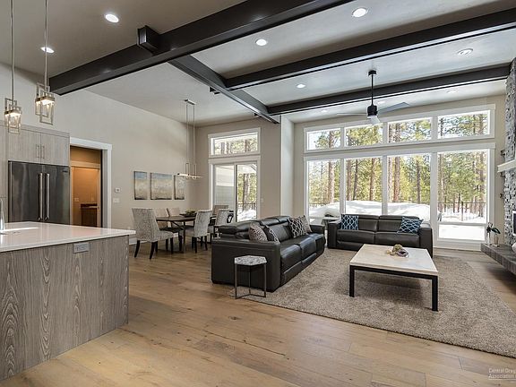 Stunning single-level home featuring custom finishes throughout, located in NW Bend near Shevlin Park and trails. Open floor plan with abundant natural light, custom cabinetry and solid Quarts surfaces. Spacious great room featuring 12' ceilings, boxed beams, skylights, hardwood floors, gas fireplace with stone surround and built-ins. Den/office with hardwood floor and double sliding barn doors. Gourmet kitchen with stainless appliances and central large island. Great separation from master suite and guest bedrooms. Master bath with large tile shower, tile floor, large walk-in closet with custom built-ins and organizers. Laundry/mud room with built-ins, sink and tile floor. Built-in cabinets for storage in garage. Paver patios in front and back of the home. Central A/C and central vacuum system.