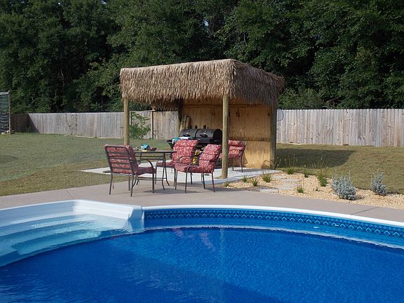 Single level, 4 br, 3 bath, swimming pool, sprinkler system, 3-car garage, privacy fence, tiki hut, outdoor day bed, shed/emergency shelter, R/V 50 amp electrical, garden, greenhouse, swing set/cargo net, fruit trees, fire pit.
