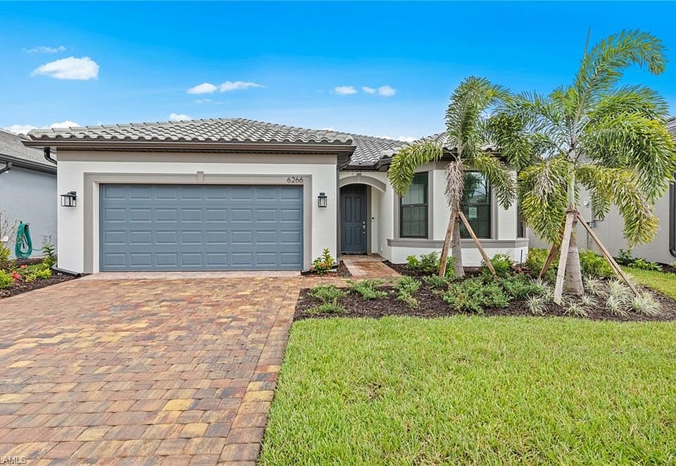 Move into Del Webb Naples Now! This Mystique features 2 Bedrooms with 2 Baths, an Extended Covered Lanai, Enclosed Flex Room, Built-In Kitchen Appliances, Walk-In Shower, and more! Located in Del Webb Naples, a premier 55+ resort-style community, residents enjoy access to over 30,000 square feet of amenity space across two stunning clubhouses: The Oasis Club and Grand Hall. The community is home to an 18-hole championship golf course (optional membership), two resort-style pools including an 8,000 sq. ft. beach-entry pool and a lap pool, a fitness center, movement studio, golf simulator, fire pit lounge, and The Rusty Putter Bar & Grille. Outdoor enthusiasts will love the 12 lighted pickleball courts, tennis courts, bocce ball courts, community garden, and miles of walking and biking trails. With a full calendar of events—including game nights, fitness classes, arts & crafts, and social gatherings—Del Webb Naples offers an unmatched lifestyle designed for relaxation, recreation, and connection. Live the active adult lifestyle you’ve dreamed of in a beautifully upgraded new home.