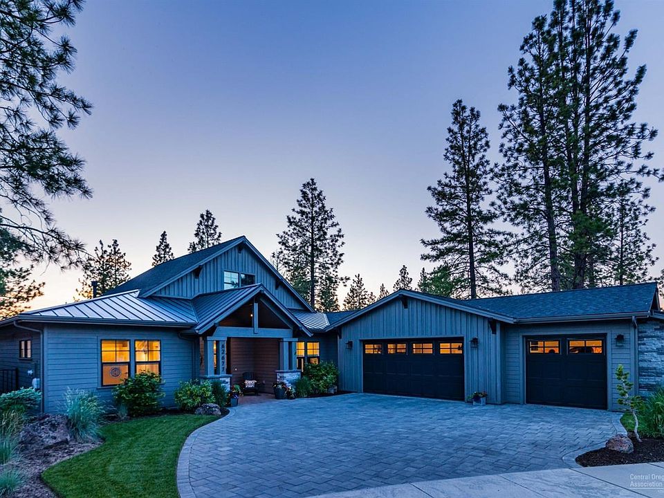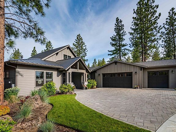Simply stunning Northwest style home in Three Pines Ridge. This home has everything you've been looking for and more! Single level, 3 car garage w/ epoxy floor, butler's pantry complete w/ second fridge & drawer dishwasher, bar area w/ wine fridge, & gorgeous finishes. Rear covered patio and perfectly sized yard, all in close proximity to Shevlin Park trail access. Fantastic layout w/ 2 master suites, spacious guest bedroom w/ attached 3rd full bath + den/office. You do not want to miss this hcard to find home in NW Bend!