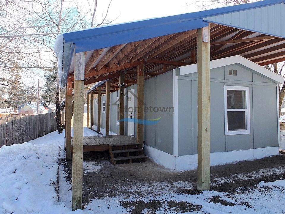 There is a heavy duty metal snow roof built over the home protecting it from the elements and extends outward providing a covered porch at the entry.