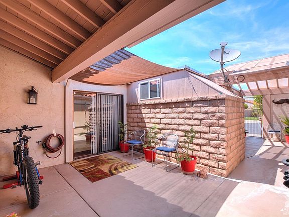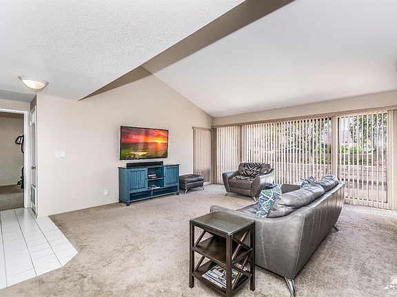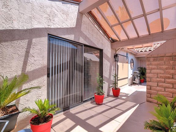 South facing Palm Springs condo on FEE land inside the Sandcastles. This adorable condo features 2 large bedrooms w/ their own bathrooms, marble counter in bathrooms, tub/shower, his & her closets, open floor plan w/ vaulted ceilings, custom vertical blinds throughout, custom paint, spacious kitchen w/ euro white cabinetry, newer white appliances, micro-hood, newer carpet, ceiling fans, huge courtyard w/ iron gate entrance, two large back patios w/ mountain views, two-car garage, Walking distance to the 13th fairway of The Tahquitz Creek Golf Resort. Great area to golf, bike, and walk. Close to downtown Palm Spring, and The River. Walking distance to Kings School of The Desert, and Fire Department. Great Value!