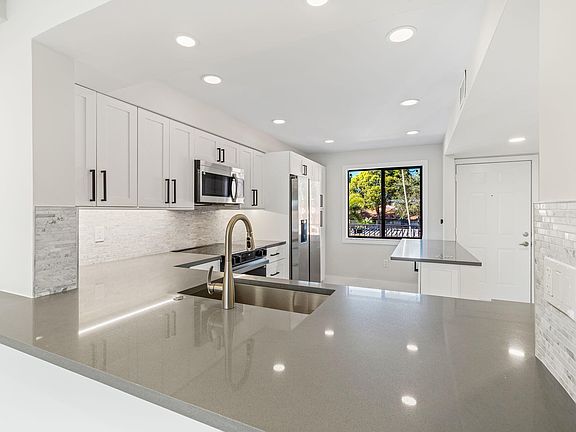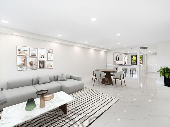 Welcome to this stunning, fully renovated 2 bed/2 bath + den condo in the sought-after Huntington Pointe community. This beautiful unit showcases mind blowing long lake views from the master bedroom and living room. Enjoy modern upgrades including 24'' X 48'' beautiful imported porcelain tile flooring throughout. Custom lighting includes LED mirrors and hi-hats in every room. The sleek kitchen features white shaker cabinets, stainless steel appliances, quartz countertops, under cabinet lighting, abundant cabinet space with a spacious pantry. Feel safe and secure with a fully upgraded, wireless alarm system. Huntington Pointe is an active adult community featuring a brand-new renovated clubhouse with multiple swimming pools, social clubs, pickleball, an on-site cafe, and much more!